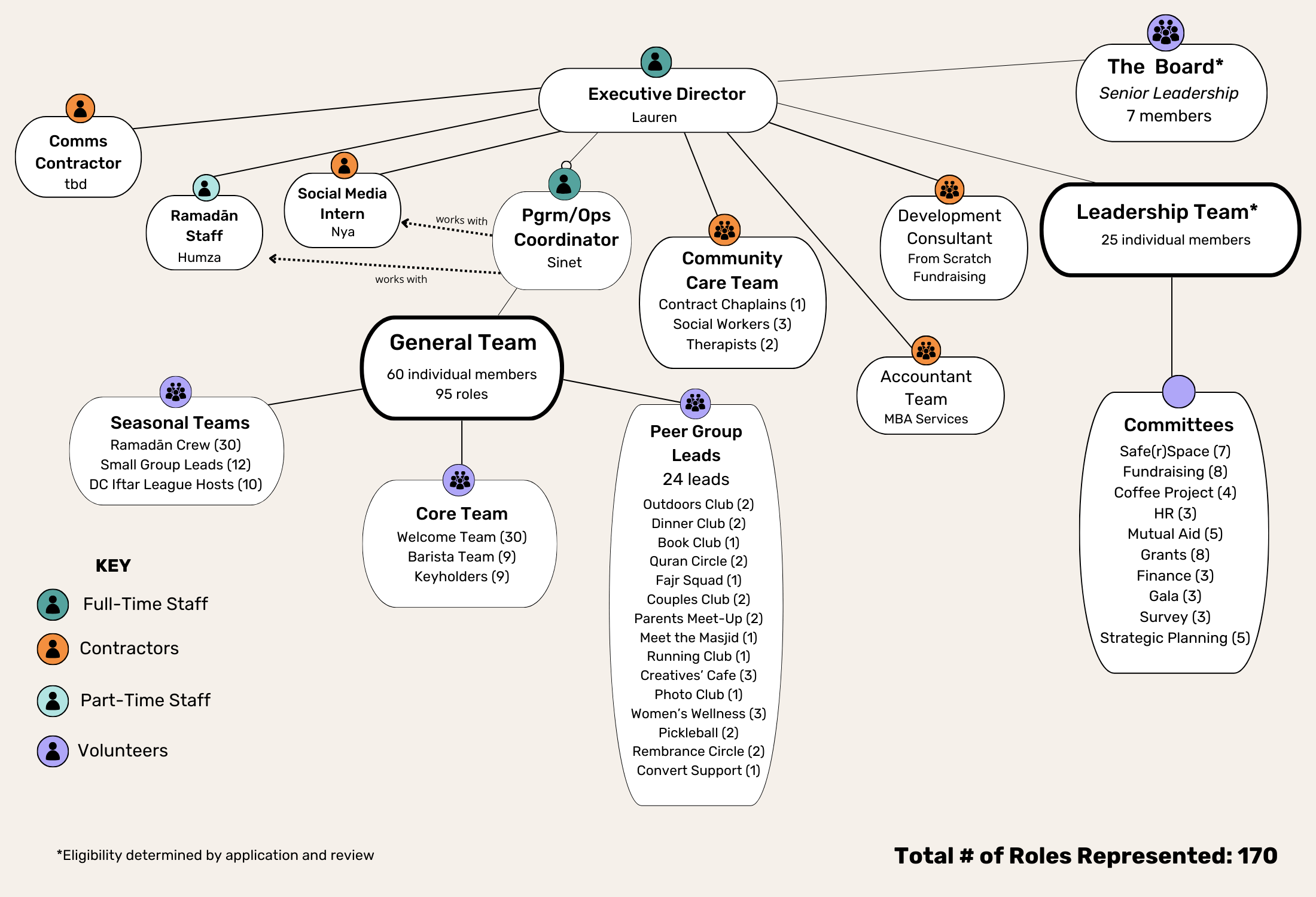 There are about 100 individuals that make up #TeamCenterDC - That includes our board, our department leads, our staff, our peer leads, our keyholders/facilitators, small group hosts, Ramadan Team, folks working on committees, and so many others who jump in to help get the job done, mashaAllah. These are the amazing folks working both behind (and often in front of!) the scenes to make this community happen!